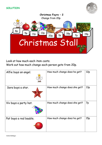Printable Making Change Money Worksheets - 2 Versions! 2nd Grade Money Worksheets are the perfect start to the young person financial wisdom. Teach them to count with coins, to add and subtract money and find total prices. Worksheets are a fun way to get kids interested in counting and saving money. Print them all for free. When you're done with these we also […] Winter Math Teaching Resources and Lesson Plans For Christmas the 5 math resources that are found on this page. Keep scrolling this page to see detailed descriptions and larger picture examples for each resource set. 1. Santa Shopping Students use addition and multiplication to solve these Christmas word problems. This activity involves money, so students are reviewing decimal points and place value as well. Christmas Math Activity Shopping on a Budget | Grades 3 - 4 These NO PREP Christmas money activity math works for enrichment, worksheet alternatives for individual kids, small groups, or partners. (Year 3,4) ...